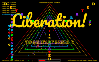 "Liberty Triangle" is an abstract simulation game that mimics the experience of fighting for liberty. When the world whispers or loudly declares that being gay is bad, what do you do?